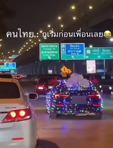 หลังเมื่อวันที่ 30 พ.ย. 2567 มีการเผยแพร่ใน สื่อสังคมออนไลน์ โดยมีผู้ใช้งานติ๊กต็อก ได้ถ่ายคลิปรถยนต์ประดับตกแต่งด้วยเขากวางเรนเดียร์ จมูกกวางเรนเดียร์ และไฟระยิบระยับ ขับอยู่บนถนนวิภาวดีรังสิต และบนยกระดับโทลเวย์นั้น
