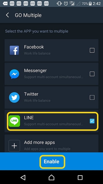 เมื่อเพิ่มเรียบร้อยแล้ว ก็เลือกแอป LINE แล้วเลือก Enable เพื่อเปิดแอป LINE ส่วนที่ 2