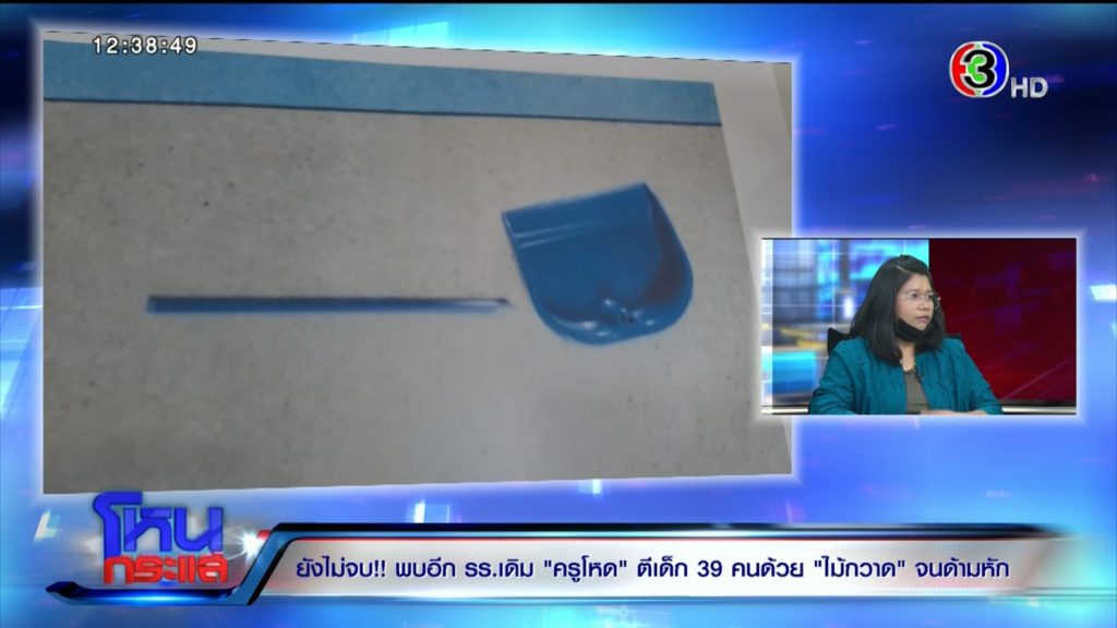 หมิม : “เกิดเมื่อ 18 ส.ค. เดือนที่แล้ว วิชาดนตรี เด็กๆ เขาคุยกัน ครูดุให้เขาหยุดคุย แต่เด็กยังคุยอยู่ เขาโมโห ใช้ไม้ตีทั้งหมด 39 คน”