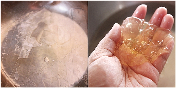 ระหว่างนี้ก็นำแผ่นเจลาตินไปแช่น้ำธรรมดา