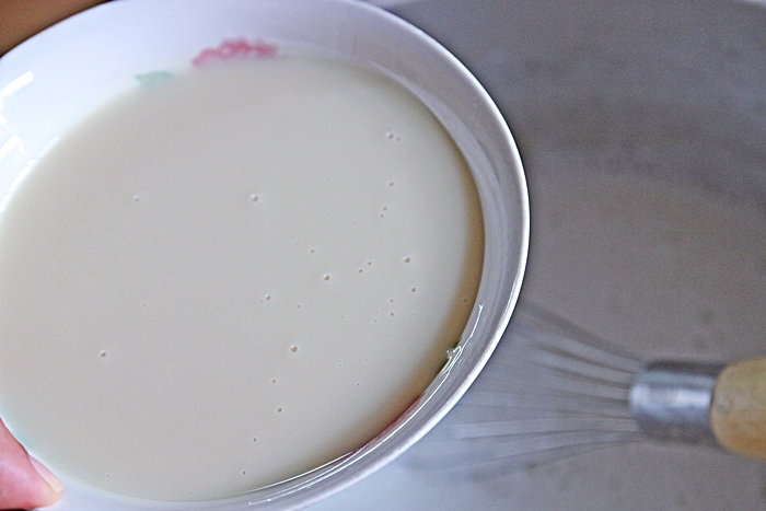 ใส่นมข้นหวานไปอันดับสุดท้าย คนให้เข้ากันยกลงพักไว้