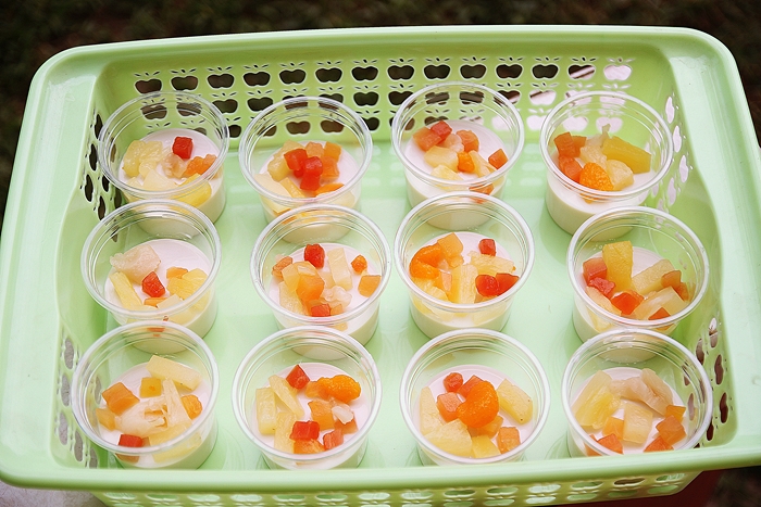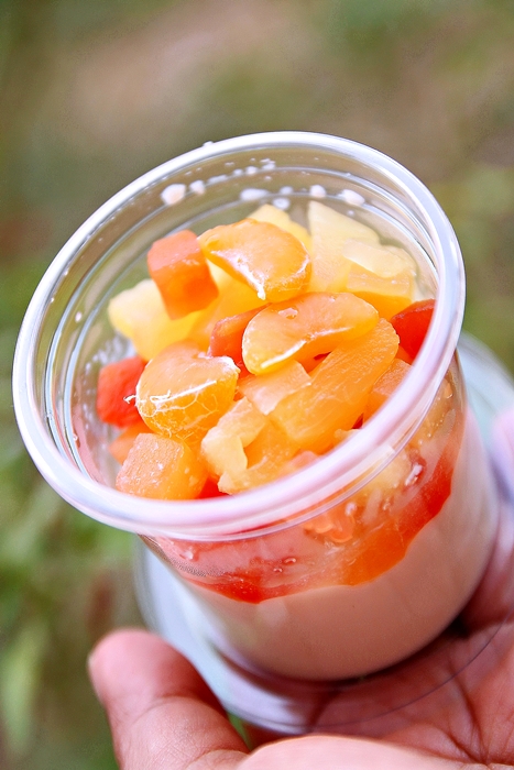 ตักฟรุตสลัดใส่ถ้วยเต้าฮวย
