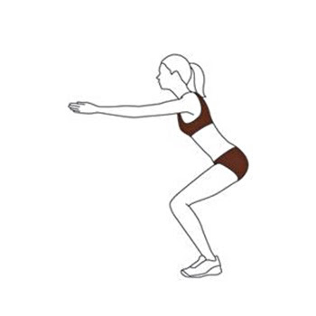 ท่าที่ 4 : ย่อเข่าหลังตรง คล้าย ๆ กำลังเตรียมกระโดดลงสระว่ายน้ำ ให้เหยียดแขนไปข้างหน้าขนานกับพื้น ย่อเข่าลงแต่อย่าให้เกิน 90 องศา และให้หัวเข่ายื่นเลยปลายเท้าออกไป นับ 1-2 เหยียดตัวขึ้นแล้วทำซ้ำ 3 ครั้ง