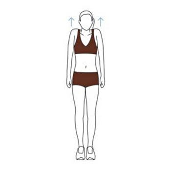 ท่าที่ 1 : ยืนตรงยกไหล่ขึ้น-ลง ท่านี้ให้ยืนตรงปล่อยแขนลงข้างตัว สบาย ๆ แล้วให้ยกไหล่ขึ้น-ลง ประมาณ 10 ครั้ง โดยเมื่อยกขึ้นให้ค้างไว้นับ 1-5 แล้วปล่อยลง ก่อนจะยกขึ้นใหม่