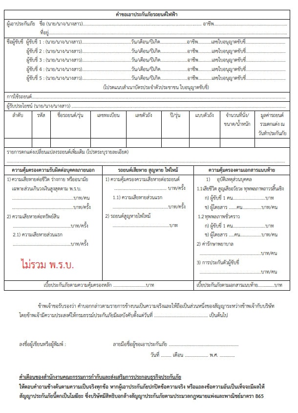- ต้องระบุชื่อผู้ขับขี่ เนื่องจากเป็นเงื่อนไขที่จะทำให้บริษัทประกันภัย และ คปภ. สามารถเก็บข้อมูลพฤติกรรมการขับขี่ของผู้ขับขี่ได้ ระบุชื่อได้สูงสุด 5 คน