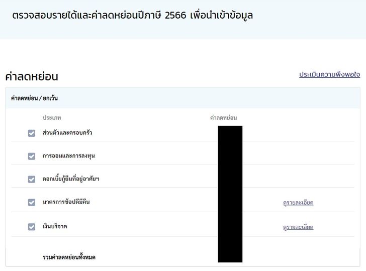 6. ระบบจะแสดงรายการเพื่อให้ตรวจสอบสิทธิลดหย่อนภาษี