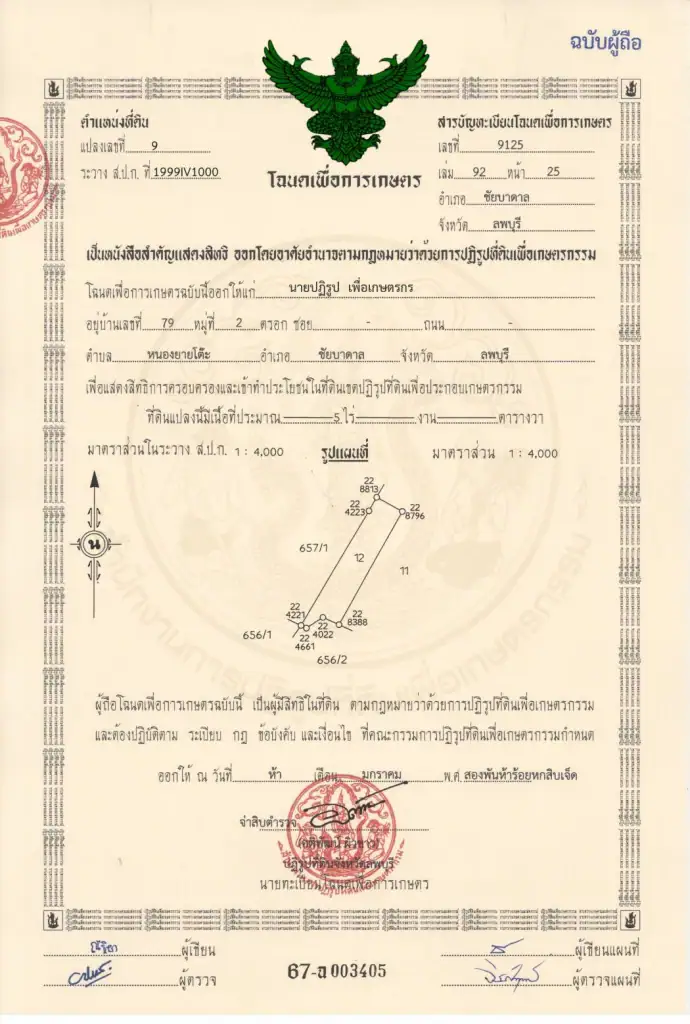 ครุฑเขียว แสดงการถือครองเพื่อเกษตรกรรมเท่านั้น