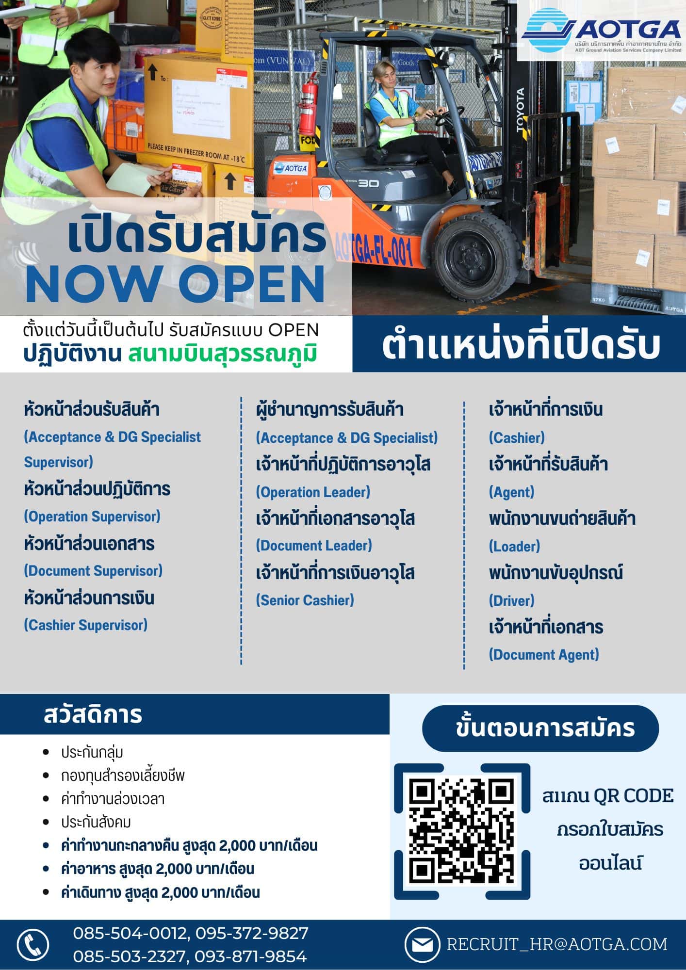 AOTGA สถานีสุวรรณภูมิ (BKK) เปิดรับสมัครพนักงานประจำศูนย์บริการศุลกากรเพื่อกระจายสินค้า