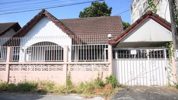 เมื่อไปถึงพบว่า เป็นบ้านชั้นเดียว เนื้อที่ 89 ตารางวา มี 3 ห้องนอน 2 ห้องรับแขก 2 ห้องนํ้า 1 ห้องครัว 2 ห้องแต่งตัว 1 ห้องเก็บของ มีที่จอดรถได้ 2 คัน จากสภาพบ้าน ค่อนข้างรกร้าง มีหญ้าขึ้น มีน้ำขัง และประตูบ้านกับรั้ว ติดป้าย ขายบ้านพร้อมที่ดิน