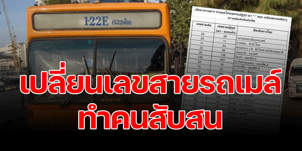 ขณะนี้เป็นช่วงเปลี่ยนผ่านตามแผนปฏิรูปฯจึงมอบหมายให้ กรมการขนส่งทางบกดำเนินการปรับเลขสายรถเมล์ใหม่ตามความต้องการของประชาชน โดยให้นำขีดออกและต่อท้ายด้วยวงเล็บสายรถเมล์เดิม เช่น 1-15 เปลี่ยนเป็น 115 (150 เดิม) ให้ง่ายต่อการจดจำ