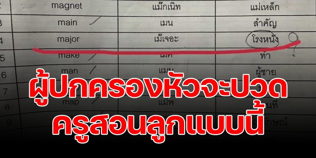 เอกสารดังกล่าวโพสต์ผู้ใช้เฟซบุ๊ก Napon Luprasong พร้อมระบุข้อความว่า “เพื่อนมาปรึกษา ครูสอนลูกว่า Major แปลว่าโรงหนัง Major ที่แปลว่า ใหญ่ วิชาหลัก สำคัญ พวกนี้คือ adj ถ้า คำนาม แปลว่าโรงหนัง ลูกเรียนอยู่ห้อง EP แม่ไปถามแล้วครูพยายามอธิบาย แต่อธิบายผิดแนะนำได้อย่างเดียว ย้ายโรงเรียนเถอะ มีคนแนบหลักฐานมาให้