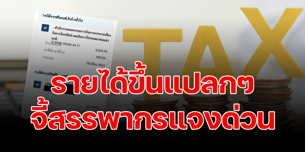 ทางเพจได้แนบภาพ ที่ระบุว่า มีรายได้จากฟรีแลนซ์ รับจ้างทั่วไป จากสำนักงานคณะกรรมการกิจการกระจายเสียง กิจการโทรทัศน์และกิจการโทรคมนาคมแห่งชาติ จำนวน 9,000 บาท หักภาษี ณ ที่จ่าย 900 บาท