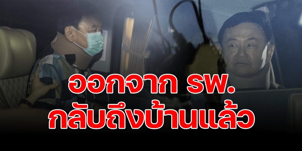 จากนั้นเวลา 06.09 น. นายทักษิณได้เดินทางออกจากอาคารมหาภูมิพลราชานุสรณ์ 88 พรรษา โรงพยาบาลตํารวจ โดยนั่งฝั่งซ้ายของรถ สวมเสื้อเชิ้ตสีเขียวและสีน้ำเงินเข้มลายตาราง ซึ่งเป็นสีมงคลประจำวัน กางเกงขาสั้น ใส่หน้ากากอนามัย มีเฝือกสีดําที่แขนข้างขวา และเฝือกสีเนื้อที่คอ