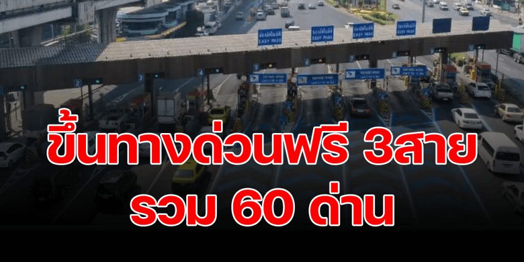 ผู้สื่อข่าวรายงานว่า การทางพิเศษแห่งประเทศไทย (กทพ.) กระทรวงคมนาคม ยกเว้นค่าผ่านทางพิเศษของทางพิเศษ รวม 3 สายทาง (60 ด่าน) ดังนี้