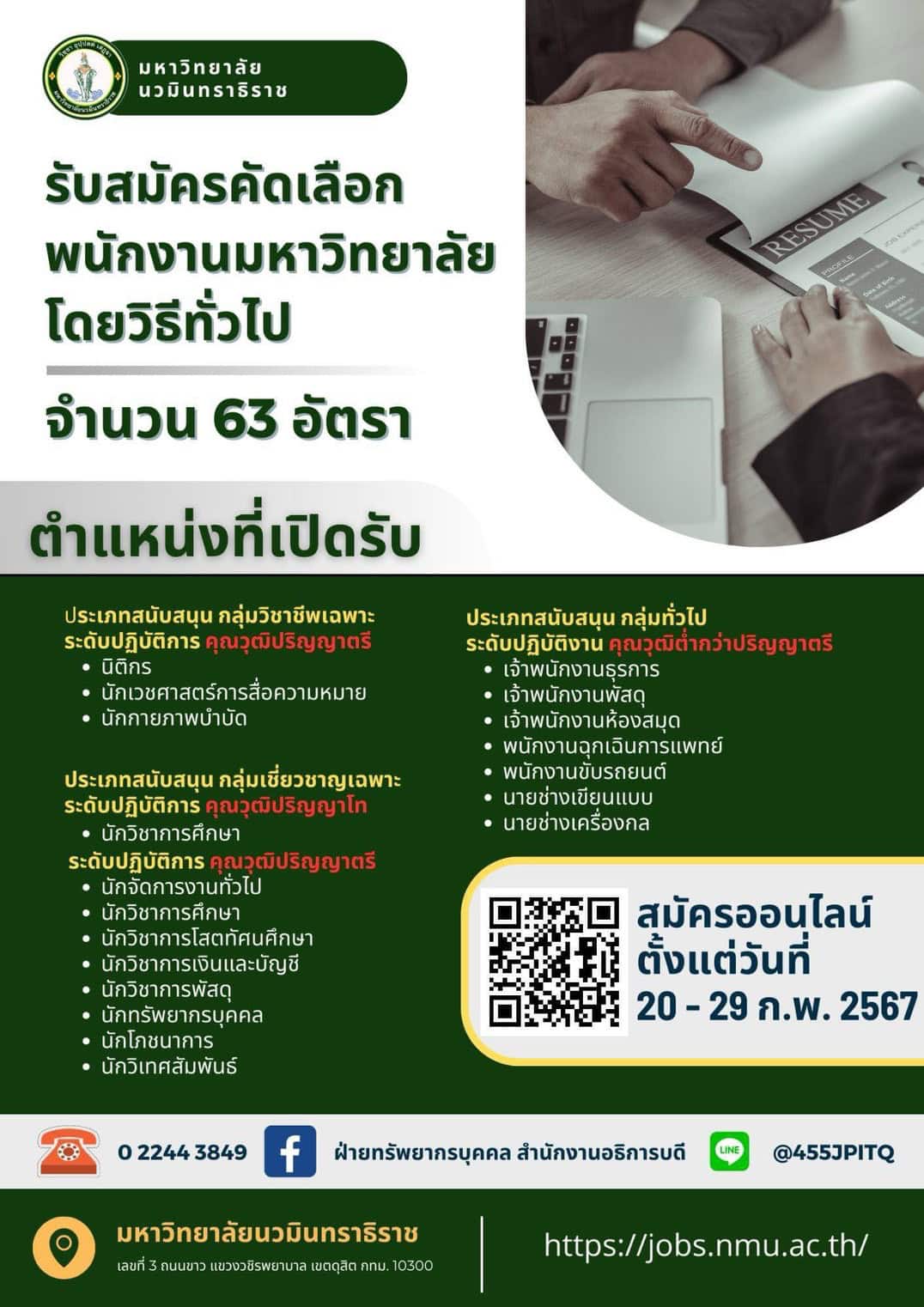 ประกาศมหาวิทยาลัยนวมินทราธิราช รับสมัครคัดเลือกบุคคลโดยวิธีทั่วไปเพื่อบรรจุและแต่งตั้งเป็นพนักงานมหาวิทยาลัย
