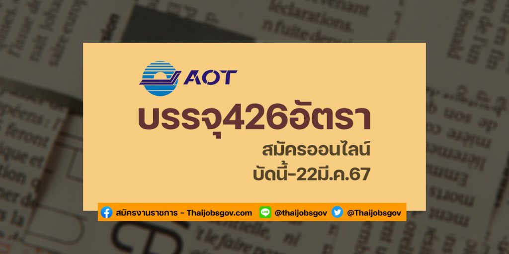 บริษัท ท่าอากาศยานไทย จำกัด (มหาชน) หรือ AOT ประกาศเปิดรับสมัครบุคคลทั่วไปเพื่อคัดเลือกเป็นพนักงานและลูกจ้างชั่วคราว ทั้งหมด 35 ตำแหน่ง 426 อัตรา ตั้งแต่วันนี้ ถึง 22 มีนาคม 2567 โดยมีรายละเอียด ดังนี้