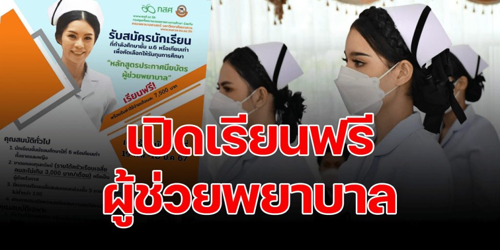 กองทุนเพื่อความเสมอภาคทางการศึกษา (กสศ.) ร่วมกับ คณะพยาบาลศาสตร์ มหาวิทยานเรศวร เปิดรับสมัครนักเรียน จบ ม.6 หรือ เทียบเท่าเพื่อคัดเลือกให้รับทุนการศึกษา “หลักสูตรประกาศนียบัตรผู้ช่วยพยาบาล” เรียนฟรี พร้อมรับค่าใช้จ่ายเดือนละ 7,500 บาท