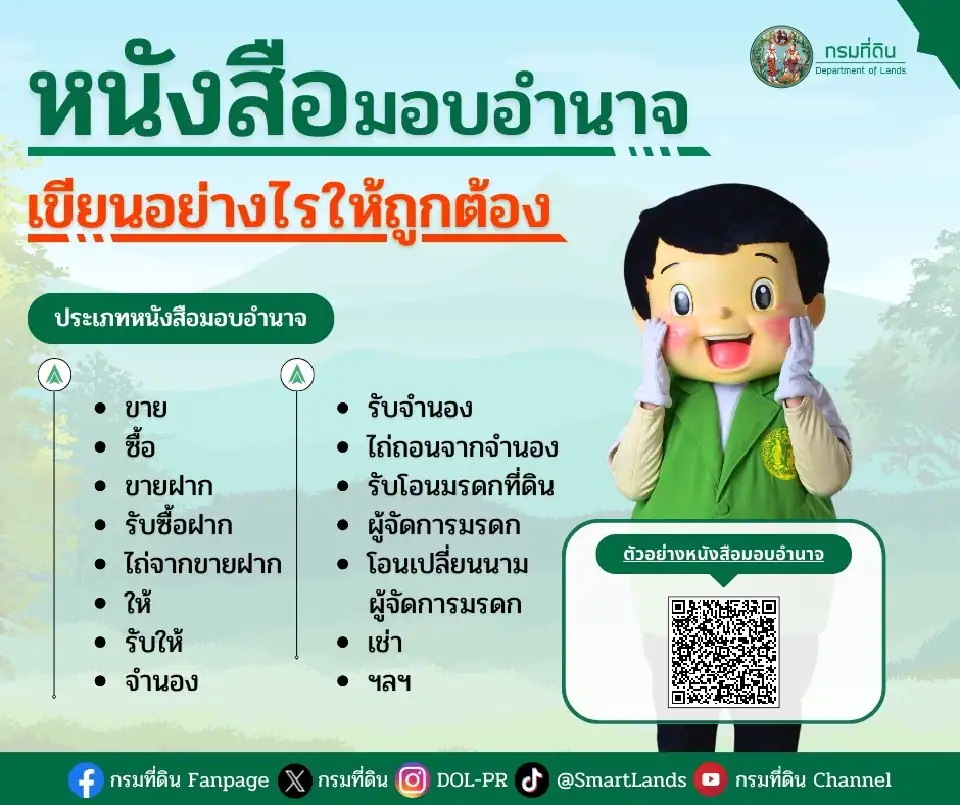 หนังสือมอบอำนาจควรใช้ตามแบบของกรมที่ดิน ซึ่งมีอยู่ 3 แบบ