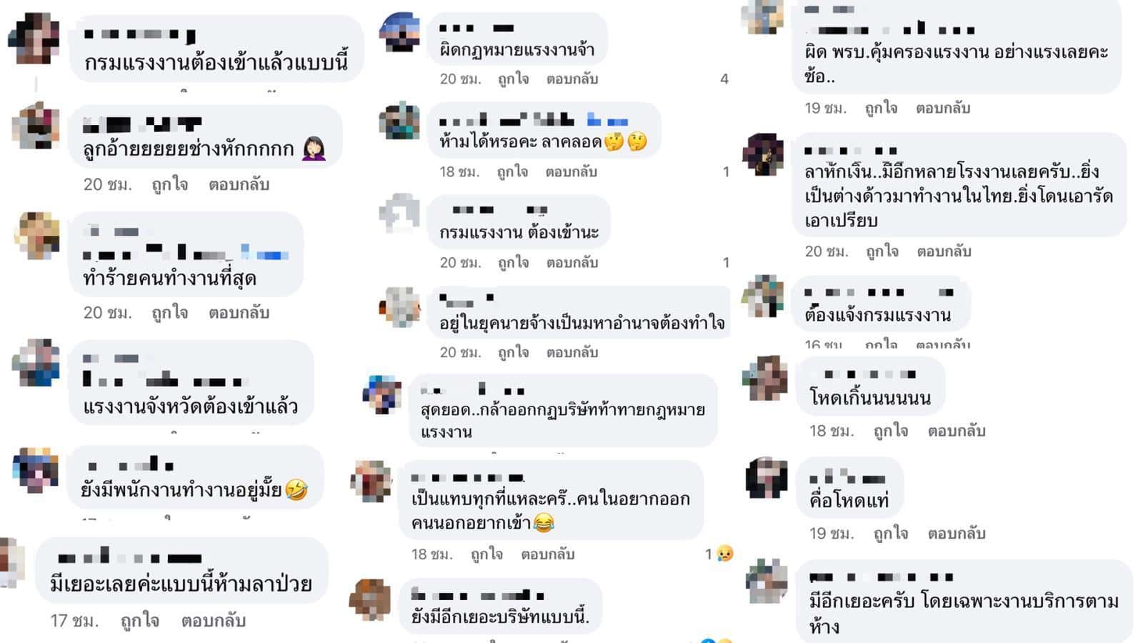 หลังโพสตดังกล่าวถูกเผยแพร่ออกไปทำให้มีชาวเน็ตต่างเข้ามากดถูกใจถึง 1.1 หมื่นครั้ง มีการกดแชร์กว่า 1 พันครั้ง และร่วมแสดงดวามคิดเห็นมากกว่า 1.4 พันครั้ง (ถึงวันที่ 22 มี.ค.67) โดยคอมเมนต์ส่วนใหญ่ต่างถามหาความถูกต้องว่ากฎใหม่เช่นนี้ขัดกับกฎหมายแรงงานหรือไม่ บางความเห็นบอกว่าเป็นกฎที่โหดเกินไปสำหรับพนักงานหนึ่งคน และบางคนก็บอกว่าหลายบริษัทกำลังใช้กฎพนักงานในลักษณะนี้อยู่เช่นกัน