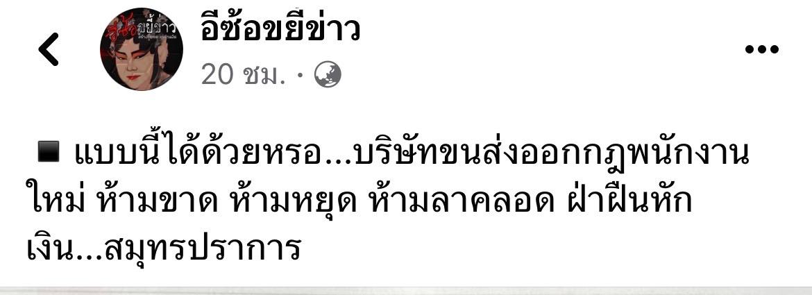 กลายเป็นประเด็นร้อนในโลกออนไลน์ทันที เมื่อเฟซบุ๊ก “อีซ้อขยี้ข่าว” โพสต์เรื่องราวกฎใหม่ของพนักงานบริษัท ซึ่งอ้างว่านำมาจากบริษัทขนส่งแห่งหนึ่งแถวสมุทรปราการ โดยระบุข้อความว่า “แบบนี้ได้ด้วยหรอ…บริษัทขนส่งออกกฎพนักงานใหม่ ห้ามขาด ห้ามหยุด ห้ามลาคลอด ฝ่าฝืนหักเงิน…สมุทรปราการ” หลังโพสตดังกล่าวถูกเผยแพร่ออกไป ทำให้ชาวเน็ตต่างเข้ามาแสดงความคิดเห็นกันอย่างล้นหลามมากกว่า 1.4 พันครั้ง (ถึงวันที่ 22 มี.ค.67)