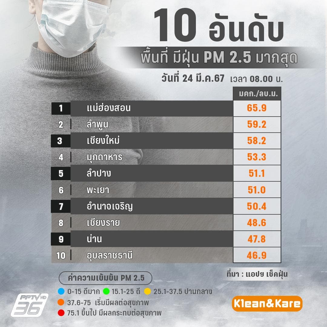 - อุบลราชธานี 46.9 ไมโครกรัม