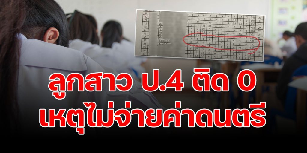 ลูกสาวเรียนอยู่ชั้น ป.4 ร.ร.อนุบาลแห่งหนึ่งใน จ.ร้อยเอ็ดค่ะ วันนี้ผลการเรียนน้องออก แต่ผลการเรียนน้องเป็นศูนย์หมดทุกวิชาค่ะสาเหตุเพราะ น้องติดค่าดนตรี 250 บาท กับทาง ร.ร.ค่ะ (จริงหรือไม่/ใช่ค่ะ ครู ผอ. แจ้งว่าน้องค้างค่าดนตรีค่ะ)