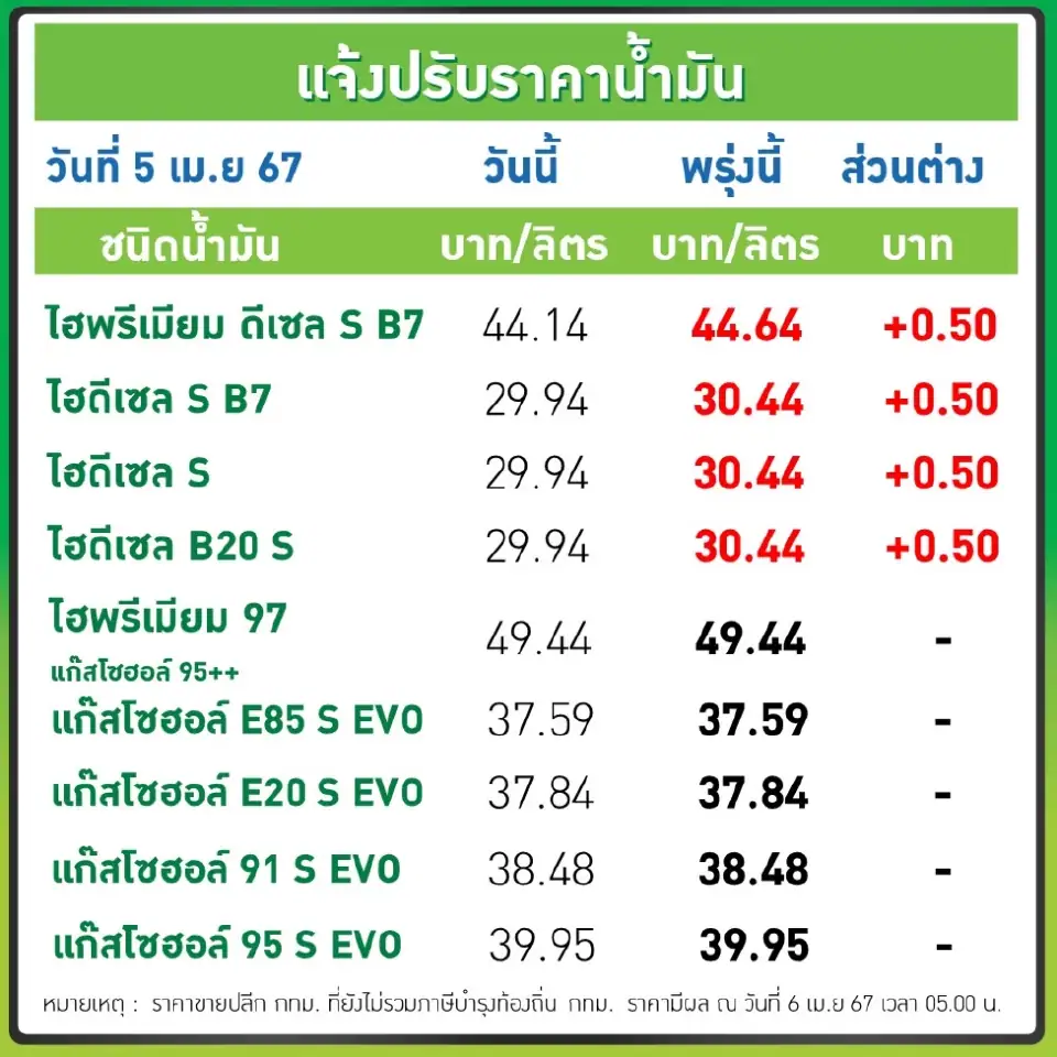 ทั้งนี้ มีผลตั้งแต่เวลา 05.00 น. วันที่ 6 เม.ย. 67
