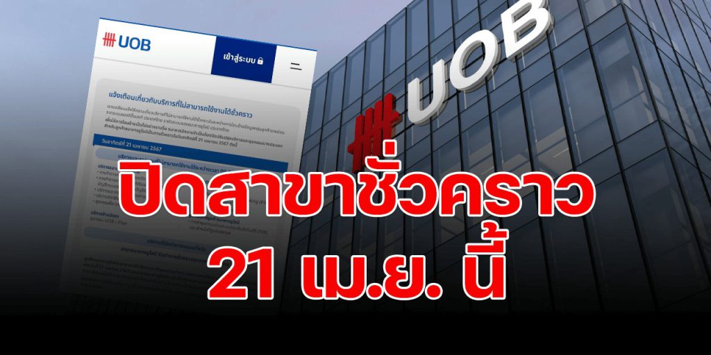 - สาขาธนาคารยูโอบี ปิดทำการชั่วคราวทุกสาขาทั่วประเทศ