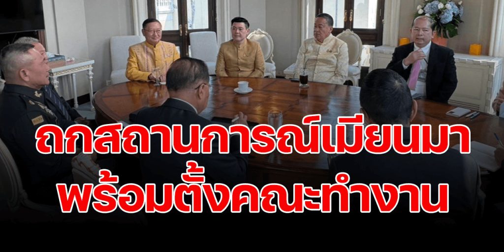 อย่างไรก็ตาม เวลาเมื่อเวลา 09.00 น. ที่ผ่านมา นายกรัฐมนตรีได้เรียกหน่วยงานด้านความมั่นคง อาทิ ฉัตรชัย บางชวด รองเลขาธิการสภาความมั่นคงแห่งชาติ (สมช.), พล.อ. ทรงวิทย์ หนุนภักดี ผู้บัญชาการทหารสูงสุด, พล.อ. เจริญชัย หินเธาว์ ผู้บัญชาการทหารบก, ปานปรีย์ พหิทธานุกร รองนายกรัฐมนตรี และรัฐมนตรีว่าการกระทรวงการต่างประเทศ รวมถึง จักรพงษ์ แสงมณี รัฐมนตรีช่วยว่าการกระทรวงการต่างประเทศ เพื่อประชุมถึงสถานการณ์ในเมียนมา ที่ตึกไทยคู่ฟ้า