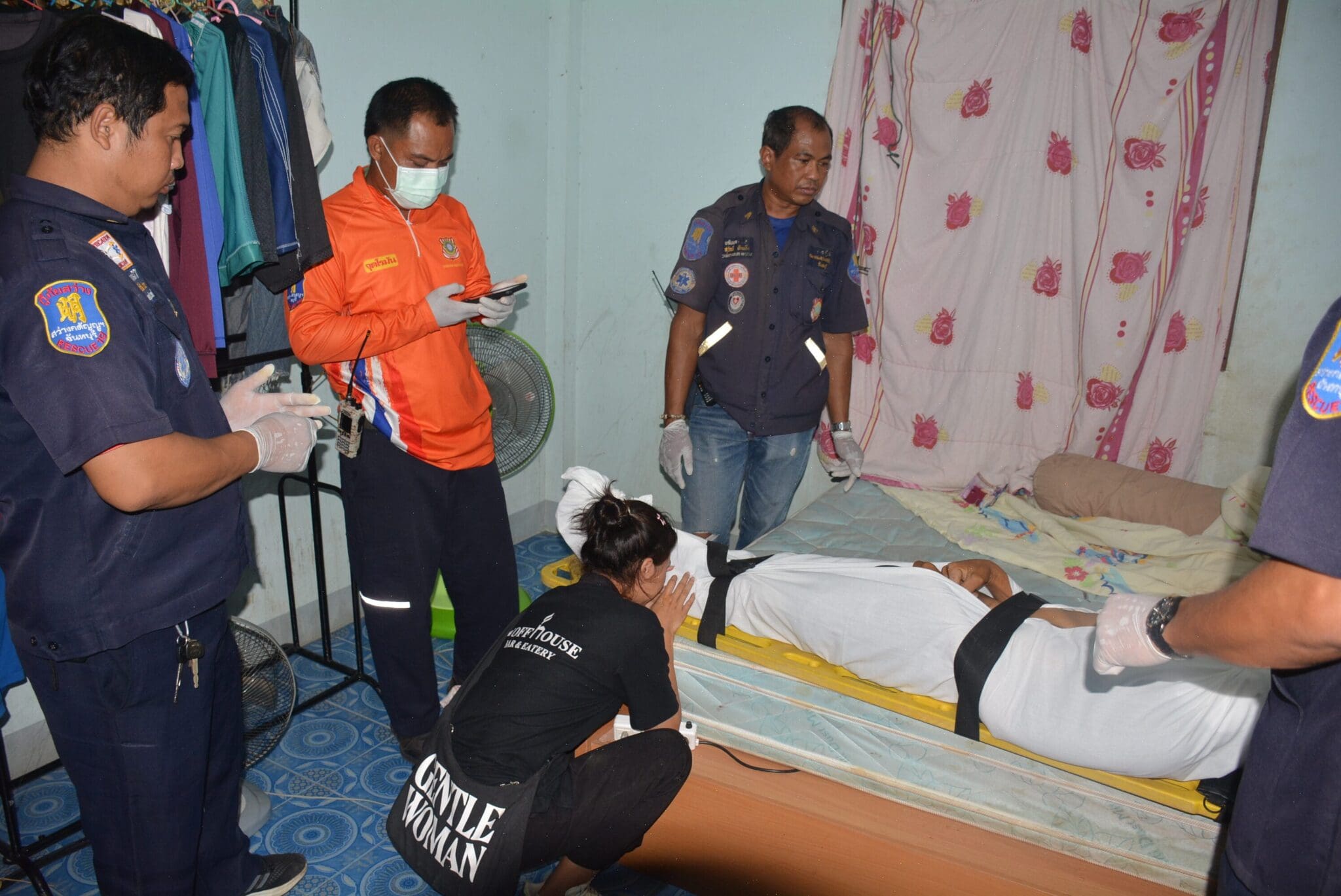 ที่เกิดเหตุเป็นบ้านพักชั้นเดียว ภายในห้องนอนพบศพของนายสุนันท์ (สงวนนามสกุล) อายุ 42 ปี เจ้าของบ้านพักที่เกิดเหตุ นอนหงายอยู่บนที่นอน หลังก่อเหตุใช้เชือกผูกคอฆ่าตัวตาย จนญาติและเพื่อนบ้านมาพบก่อนรีบตัดเชือกนำร่างลงมาหวังช่วยชีวิตแต่ไม่ทัน