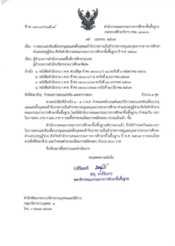 - ภายในเดือน มิ.ย. 67 : ประกาศผลการสอบแข่งขัน