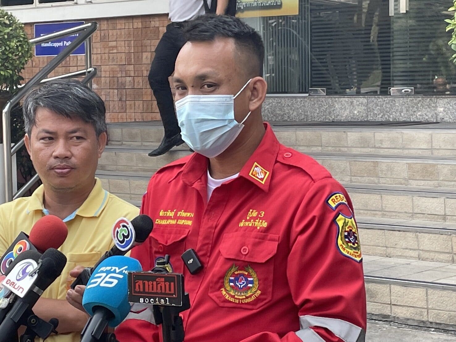 เมื่อเวลา 10.00 น. วันที่ 22 เมษายน ที่ สน. บางเขน นายจักรพันธุ์ สร้อยพวง เจ้าหน้าที่กู้ภัย มูลนิธิ เพชรเกษม หนึ่งในเจ้าหน้าที่กู้ภัยที่ถูกถ่ายคลิปและนำไปโพสต์ลงในโซเชียลได้กล่าวถึงเหตุการณ์วันดังกล่าวว่า เมื่อวันที่ 20 เม.ย. เวลา 09.30 น. ตนได้รับแจ้งเหตุรถชนที่บริเวณกม.4 มีผู้บาดเจ็บหลายราย จึงได้ไปตรวจสอบ โดยตนขับออกมาจากตลาดหัวมุมรามอินทรา ขณะตรวจสอบนั้นตนพบเห็น รถกู้ชีพของอีกมูลนิธิหนึ่งอยู่ด้านหน้าของรถตน ที่ได้มีการขับย้อนศรตนจึงคิดว่าจุดเกิดเหตุนั้นน่าจะอยู่ไม่ไกลจึงได้มีการขับตามไป แต่แท้จริงแล้วนั้นอุบัติเหตุห่างจากจุดย้อนศรประมาณ300 ถึง 400 เมตร
