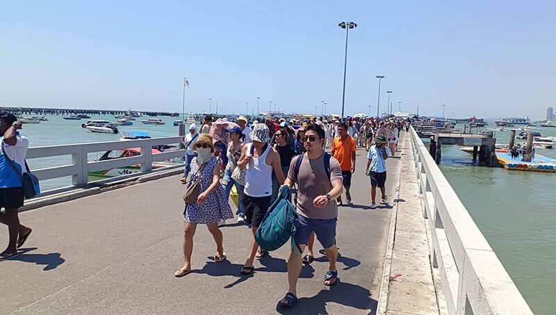 ส่วนบรรยากาศที่ท่าเรือแหลมบาลีฮาย เมืองพัทยา ที่เป็นท่าเรือข้ามฝากไปยังเกาะล้าน สถานที่ท่องเที่ยวอันดับต้นๆ ก็มีนักท่องเที่ยวทั้งชาวไทยและชาวต่างชาติเดินทางไปท่องเที่ยวจำนวนมาก ทำให้การจราจรบริเวณดังกล่าวมีรถจำนวนมาก แต่ยังไม่ติดขัด สามารถเคลื่อนตัวได้แบบชะลอตัว