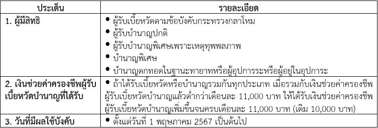 วันที่ 1 พฤษภาคม 2567 นอกจากข้าราชการที่เงินเดือนต่ำกว่า 18,000 บาท จะได้รับการปรับขึ้นเงินเดือนแล้ว ในส่วนของข้าราชการบำนาญ ที่มีเบี้ยหวัดบำนาญต่ำกว่า 11,000 บาท ก็จะได้รับเงินช่วยค่าครองชีพผู้รับเบี้ยหวัดบำนาญเพิ่มขึ้นจนครบ 11,000 บาท เช่นกัน