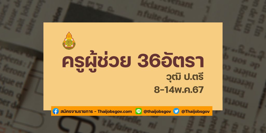 ตำแหน่งครูผู้ช่วย(คณิตศาสตร์/ภาษาไทย/ภาษาอังกฤษ/วิทยาศษสตร์ทั่วไป/สังคมศึกษา/คอมพิวเตอร์/ประถมศึกษา/ปฐมวัย) 36 อัตรา