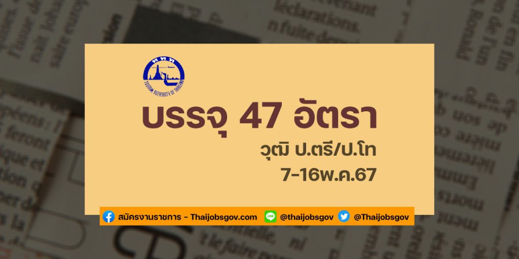 การท่องเที่ยวแห่งประเทศไทย (ททท.) เป็นรัฐวิสาหกิจสังกัดกระทรวงการท่องเที่ยว และกีฬา มีความประสงค์จะรับสมัครบุคคลเพื่อบรรจุพนักงาน จํานวน 47 อัตรา หรือ จ้างเป็นลูกจ้าง ททท. จํานวน 5 อัตรา โดยมีรายละเอียด