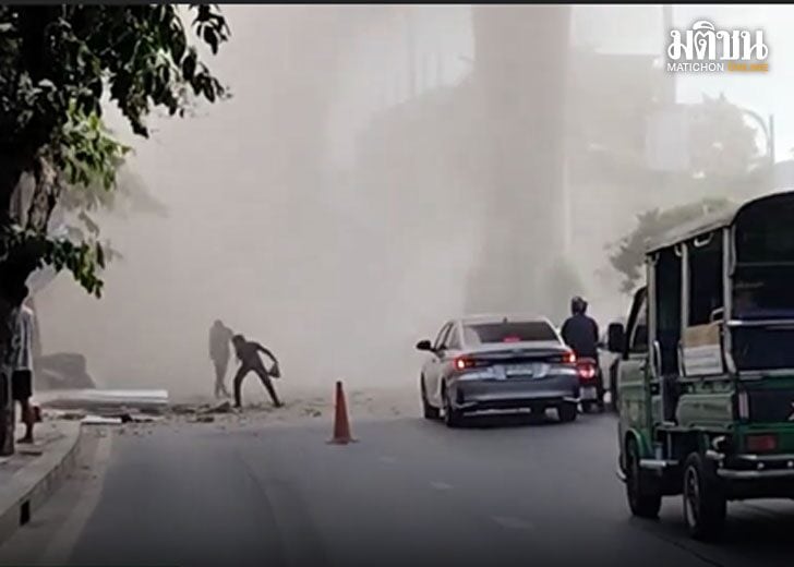 ทั้งนี้คลิปเหตุการณ์ยังเห็นด้วยว่า มีเศษปูนของอาคารพาณิชย์ที่ถล่ม ยังกระเด็นลงมาบนถนนจรัญสนิทวงศ์ ทำให้รถที่สัญจรผ่านไปมา ต่างต้องใช้ความระมัดระวังอย่างมาก.