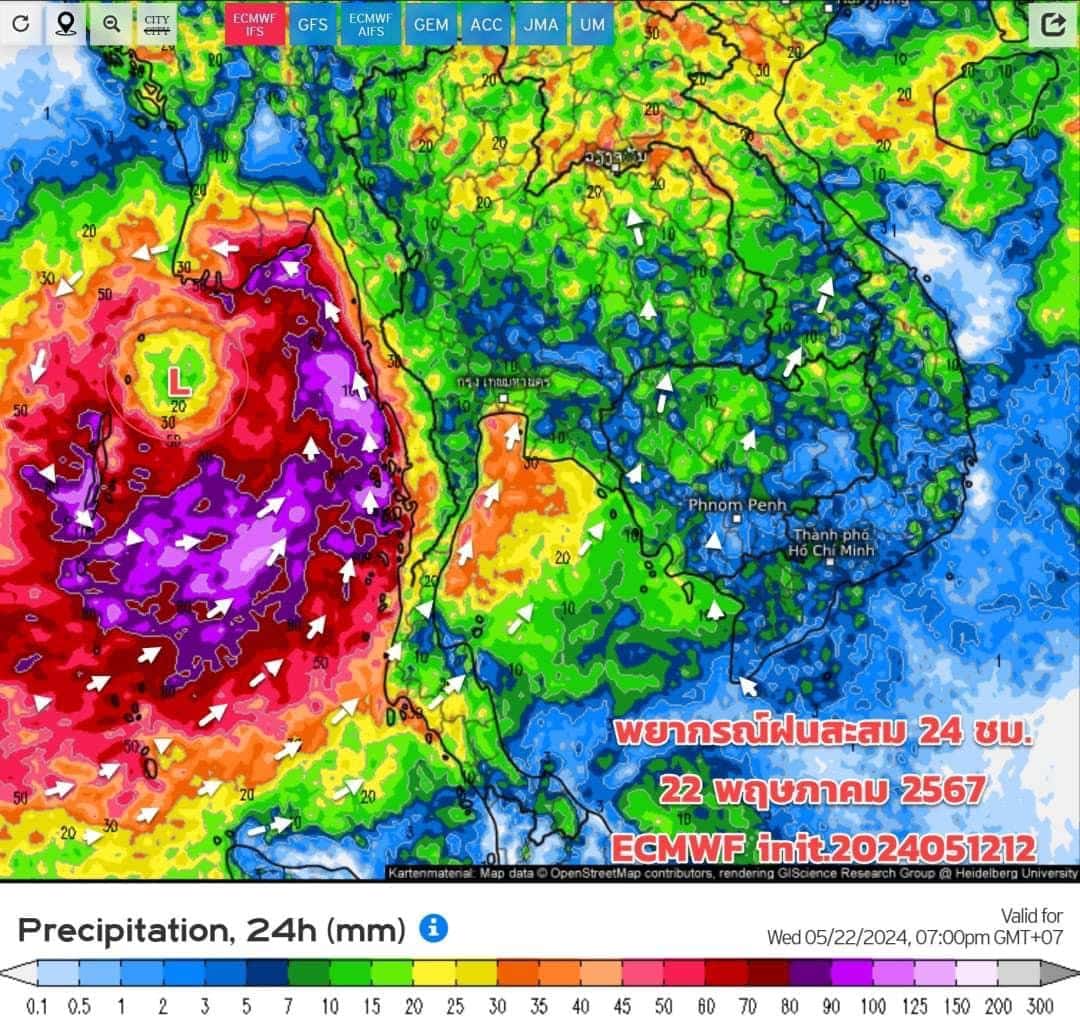 กรมอุตุนิยมวิทยา อัพเดทผลการพยากรณ์ฝนสะสมรายวัน 10 วันล่วงหน้า ระหว่าง 13-22 พ.ค. 2567 จากศูนย์พยากรณ์อากาศระยะกลางยุโรป (ECMWF) โดยวิเคราะห์ตามผลของแบบจำลองฯ