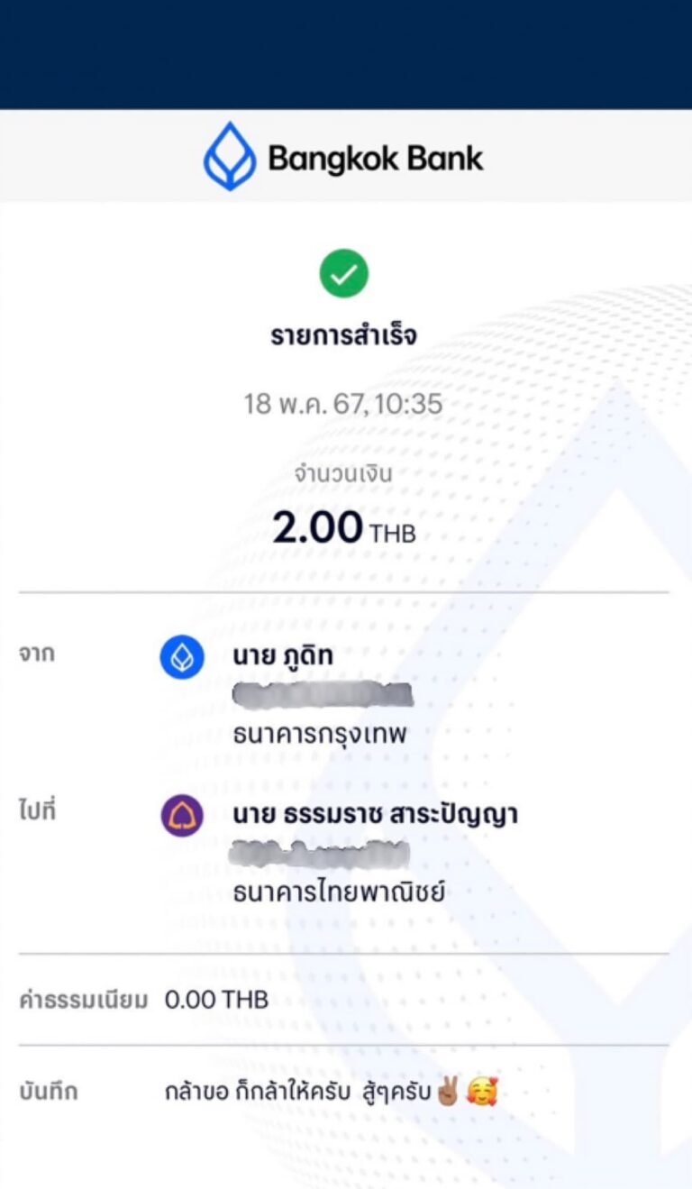 โดย “หนุ่ม” แนบสลิปพร้อมกับโพสต์ข้อความ ระบุว่า “ผมเห็นคุณทนาย ขอให้ร่วมสนับสนุนการทำงาน และใส่ชื่อ รวมถึงเบอร์บัญชีเอาไว้ ผมมีความยินดีช่วยเหลือเป็นอย่างยิ่งครับ เต็มที่ครับ”