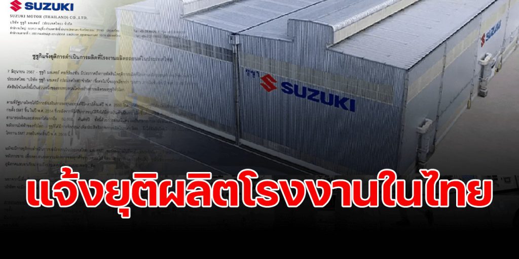 ซูซูกิ มอเตอร์ คอร์ปอเรชั่น ผู้ผลิตรถยนต์ ประเทศญี่ปุ่น ออกประกาศการตัดสินใจที่จะยุติการผลิตที่โรงงานผลิตของ บริษัท ซูซูกิ มอเตอร์ (ประเทศไทย) จำกัด หรือ SMT ซึ่งเป็นผลมาจากการทบทวนโครงสร้างการผลิตของซูซูกิทั่วโลก