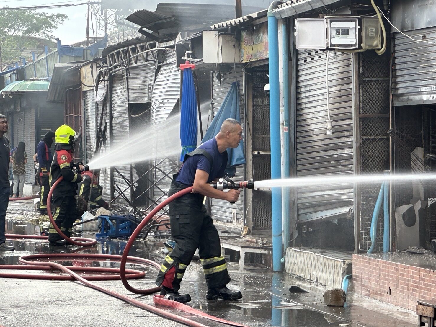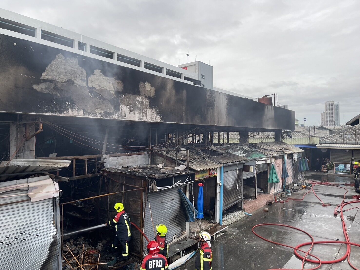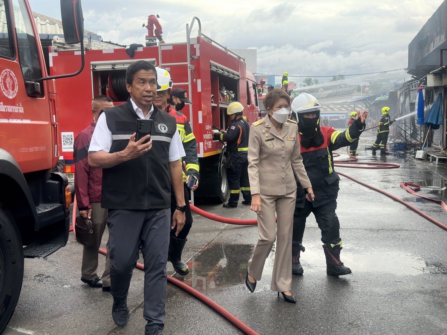 เมื่อเวลา 06.30 น. นายชัชชาติ สิทธิพันธุ์ ผู้ว่าราชการกรุงเทพมหานคร (กทม.) ไลฟ์ผ่านเฟซบุ๊กลงพื้นที่ดูความเสียหายภายในตลาด พร้อมด้วยนายต่อศักดิ์ โชติมงคล ประธานที่ปรึกษาของผู้ว่าฯ กทม. นายสุริยชัย รวิวรรณ ผอ.สำนักป้องกันและบรรเทาสาธารณภัย (สปภ.) น.ส.ภัทร์กร สินสุข ผอ.เขตจตุจักร และผู้เกี่ยวข้อง