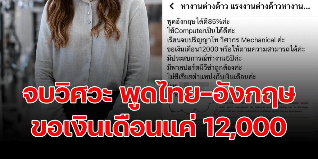 เงินเดือนที่ต้องการ : 12,000 บาท (หรือให้ตามความสามารถ)