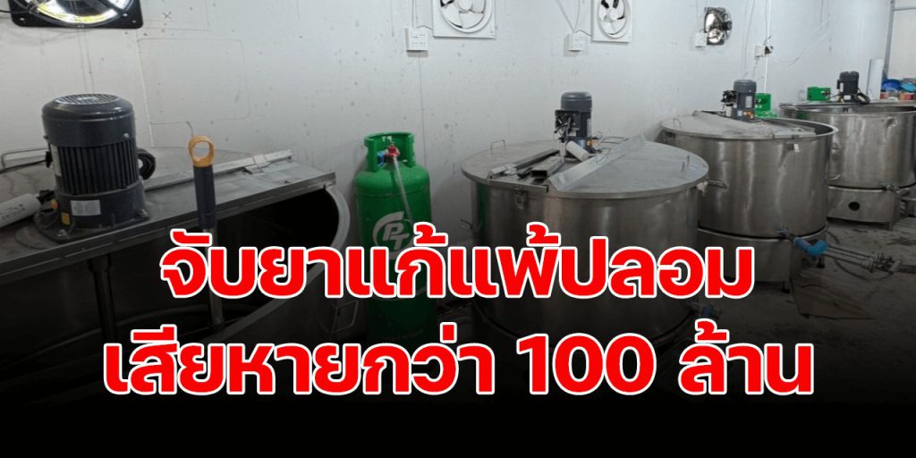 21 มิ.ย. 67 เจ้าหน้าที่ตำรวจ กก.สส.บก.น.7 ได้นำหมายค้นศาลจังหวัดนนทบุรี ที่ 548/2567 เข้าตรวจค้นสวนกระท่อมล้อมรั้วสังกะสีทึบ ไม่มีเลขที่ ต.ราษฎร์นิยม อ.ไทรน้อย จ.นนทบุรี ภายในสวนมีเนื้อที่ประมาณ 9 ไร่ มีโรงงานและเครื่องจักรสำหรับผลิตและบรรจุสินค้าขนาดใหญ่ จากการตรวจค้น พบ 1. ยาแก้แพ้ (ปลอม) ขนาด 60ml ที่บรรจุเสร็จแล้วติดฉลาก ยี่ห้อ allergin syrup (อเลอร์ยิ่น) จำนวน 60 ลัง จำนวน 12,000 ขวด 2. เครื่องจักรบรรจุ ยาแก้แพ้ชนิดน้ำ 2 เครื่อง 3. เครื่องจักรปิดฝา 1 เครื่อง 4. เครื่องจักรติดฉลาก 1 เครื่อง 5. ฉลาก ยี่ห้อ allergin syrup (อเลอร์ยิ่น) 6. เครื่องรัดกล่องกระดาษ 1 เครื่อง พร้อมเชือกรัดกล่อง 35 ม้วน 7. รถยนต์ตู้ทึบ หมายเลขทะเบียน ฒห 6766 กทม 8.ขวดเปล่าบรรจุยา 80,000 ใบ 9. รถแฮนด์ลิฟต์ 1 คัน โดยมี นายฐนกฤต อภิมหาเจริญไพศาล อายุ 37 ปี เป็นเจ้าของ และนายทวีศักดิ์ คำภูผา อายุ 25 ปี เป็นผู้ดูแล