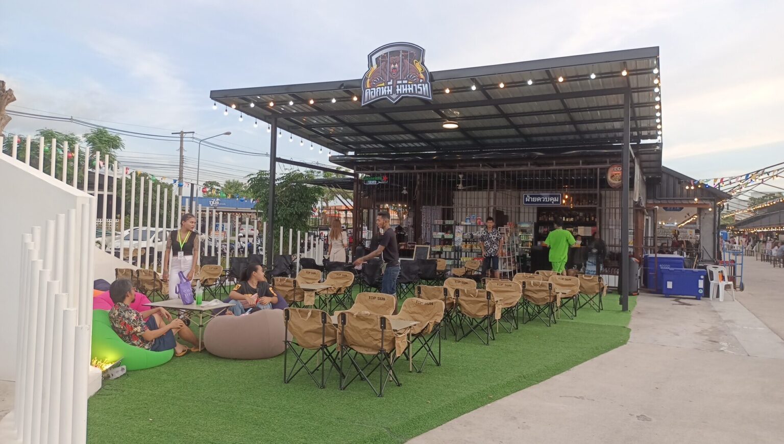 โดยร้าน “คอกหมี มินิมาร์ท” นอกจากจะแบ่งโซนโต๊ะเก้าอี้สำหรับให้ลูกค้านั่งรับประทานอาหารและเครื่องดื่มแล้ว ยังมีการออกแบบจำลองบรรยากาศร้านให้เหมือนคุกหรือเรือนจำ โดยตกแต่งร้านเป็นห้องที่มีลูกกรงเหล็ก มีการจัดโซนต่างๆ ไว้ภายใน ได้แก่ โซนของกลาง โซนทำประวัติผู้ต้องโทษ โซนที่นอนที่มีผ้าห่มผืนเล็กสำหรับปูนอน โซนห้องสุขาที่เป็นโถส้วมแบบนั่งยอง มีผนังกั้นเพียงครึ่งเดียวแบบห้องขัง รวมถึงโซนฝึกอาชีพ นอกจากนี้ยังมีเครื่องพันธนาการเหมือนที่ใช้กับนักโทษในเรือนจำจริงๆ เช่น โซ่และตรวนมาตกแต่งอีกด้วย และยังมีการเตรียมชุดนักโทษ กุญแจมือ โซ่ตรวน ให้ลูกค้าและนักท่องเที่ยวที่มาใช้บริการได้สวมใส่ถ่ายรูปเช็กอินด้วย ท่ามกลางความสนใจของบรรดาลูกค้าและนักท่องเที่ยวที่มาเดินตลาดแห่เข้ามาชมเป็นจำนวนมาก และต่างพูดเป็นเสียงเดียวกันว่า แปลกแหวกแนว ไม่คิดว่าจะมีใครกล้าทำร้านออกมาในแนวห้องขังหรือเรือนจำแบบนี้