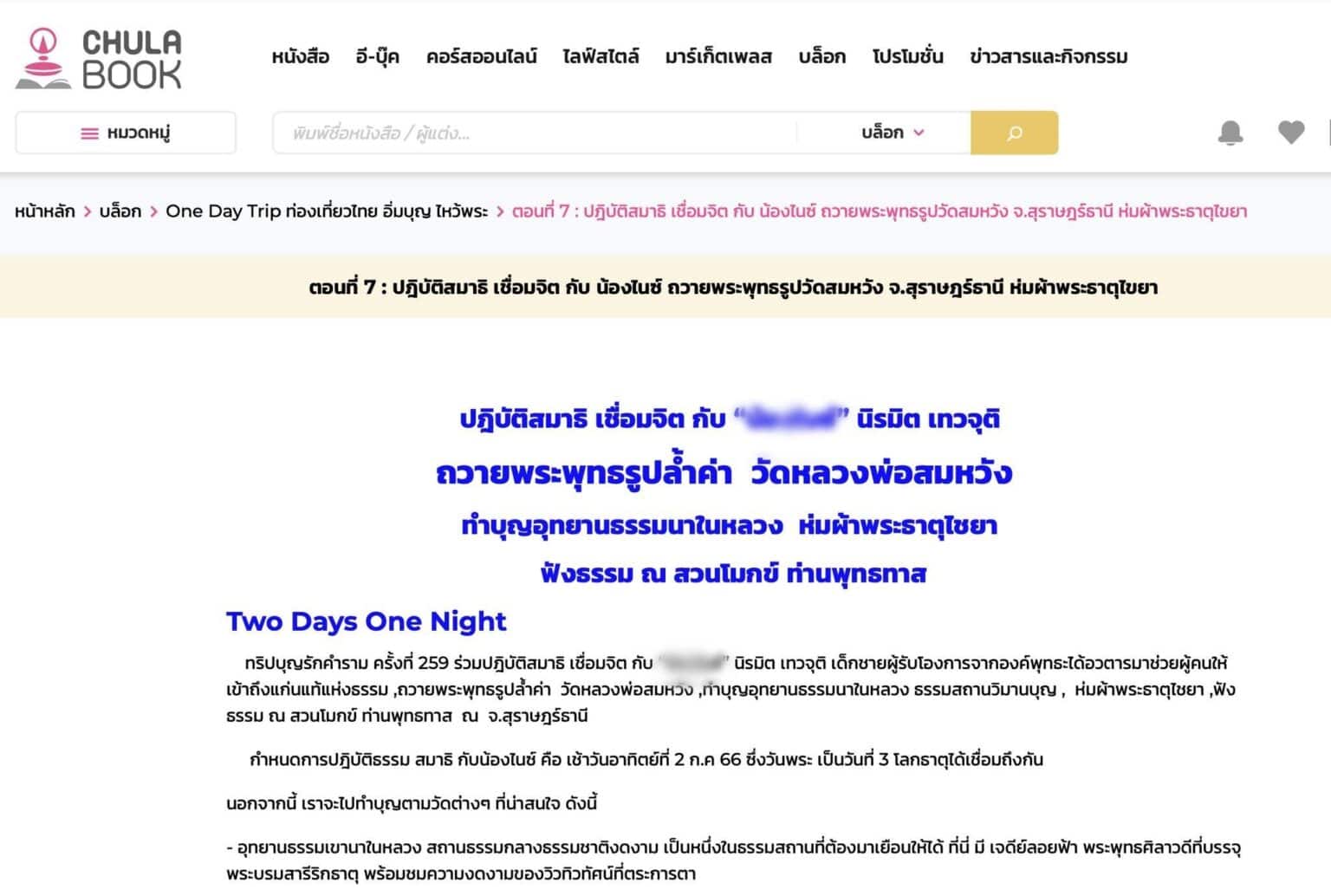 จากกรณีมีผู้แชร์ภาพข้อเขียนหนึ่ง ในบล็อกของเว็บไซต์ศูนย์หนังสือแห่งจุฬาลงกรณ์ มหาวิทยาลัย (ศูนย์หนังสือจุฬาฯ) ที่เปิดให้ประชาชนเขียนเผยแพร่กิจกรรมต่างๆ ได้ ซึ่งมีผู้ใช้รายหนึ่งได้เข้าไปเผยแพร่การปฏิบัติธรรมของตน ระบุว่า ตอนที่ 7 : ปฏิบัติสมาธิ เชื่อมจิต กับเด็ก 8 ขวบถวายพระพุทธรูปวัดสมหวัง จ.สุราษฎร์ธานี ห่มผ้าพระธาตุไชยา เป็นการจัดกิจกรรม “ทริปบุญรักคำราม” พาไปปฏิบัติสมาธิ เชื่อมจิต กับเด็กอายุ 8 ขวบ ที่ตกเป็นข่าวเรื่องการฟ้องร้องกันไปมาระหว่างผู้ปกครองกับพิธีกรชื่อดังรายหนึ่ง หลังถูกตั้งคำถามเรื่องการสอนเชื่อมจิตกับหลักทางพระพุทธศาสนา โดยพบว่าจัดกิจกรรมไปเมื่อวันที่ 2 ก.ค.2566 ส่งผลให้เกิดเสียงวิพากษ์วิจารณ์ถึงความเหมาะสมในวงกว้าง