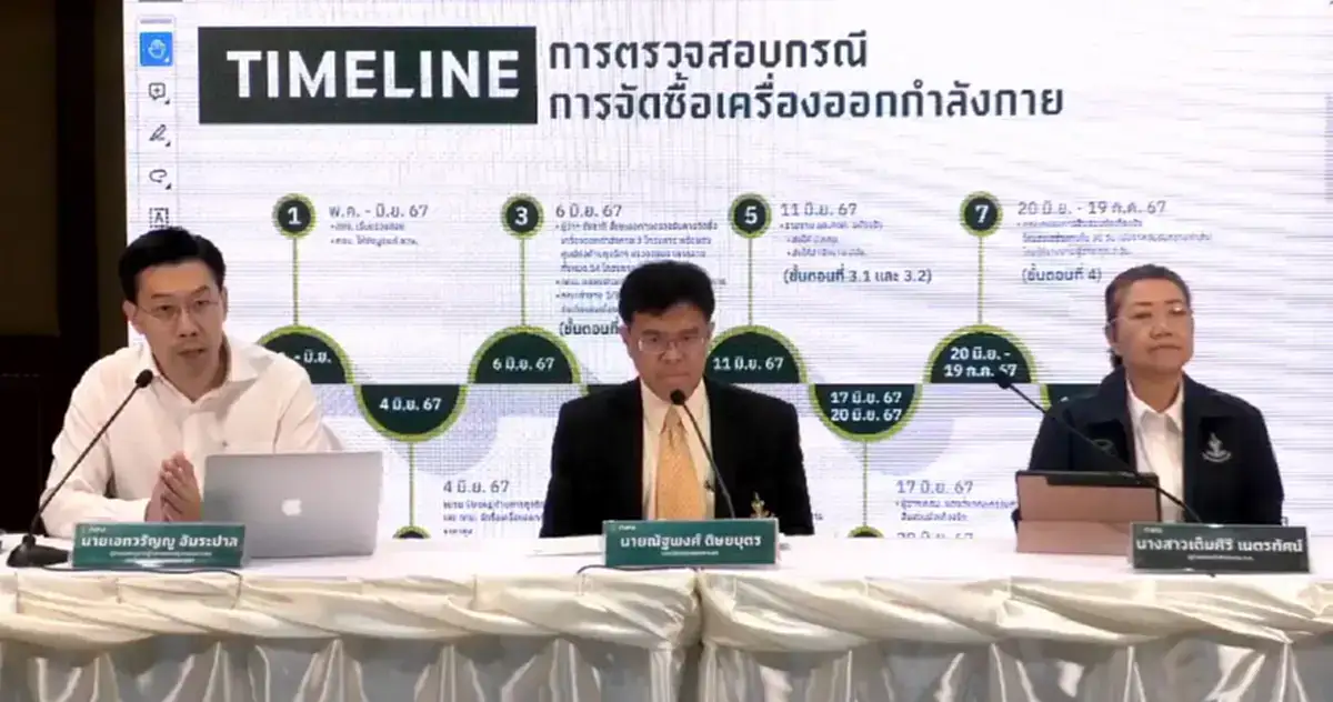 30 ก.ค.67 กรุงเทพมหานครได้เปิดแถลงข่าว ความคืบหน้าการตรวจสอบเรื่องทุจริตของกรุงเทพมหานคร จากห้องรัตนโกสินทร์ ศาลาว่าการกรุงเทพมหานคร (เสาชิงช้า) โดยมีการแถลงผลสืบสวนข้อเท็จจริงการจัดซื้อเครื่องออกกำลังกายของศูนย์กีฬา กทม. หลังจากที่ได้ครบกำหนดเวลาสอบสวน 30 วัน