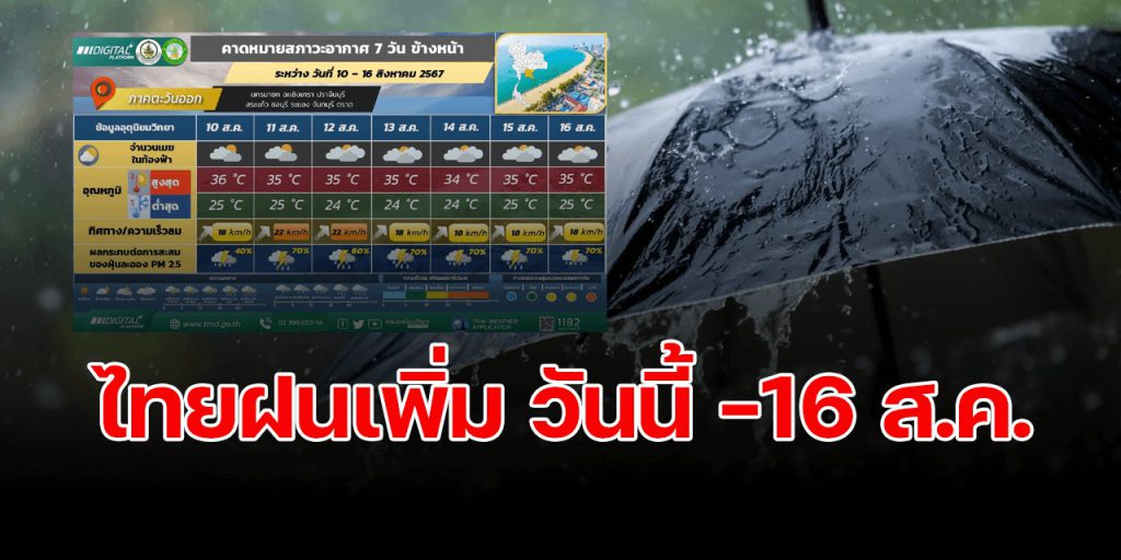 กรมอุตุนิยมวิทยา คาดหมายอากาศรายภาค ระหว่างวันที่ 10 – 16 สิงหาคม พ.ศ. 2567