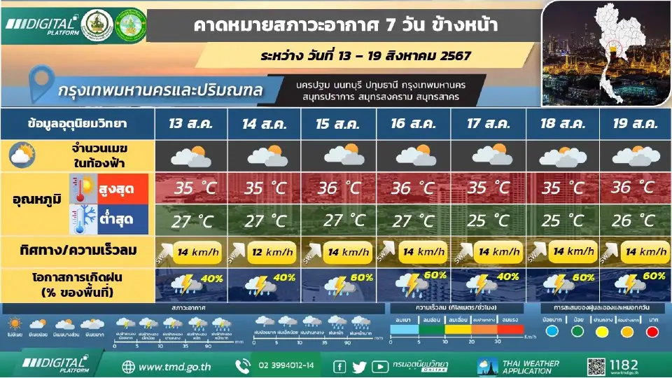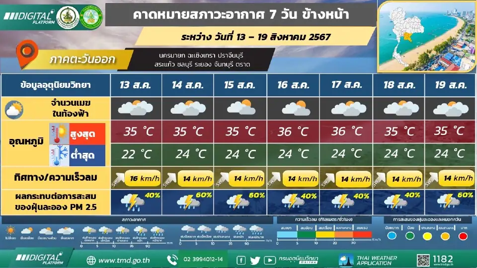 กรมอุตุนิยมวิทยา คาดหมายอากาศรายภาค ระหว่างวันที่ 13 – 19 สิงหาคม พ.ศ. 2567