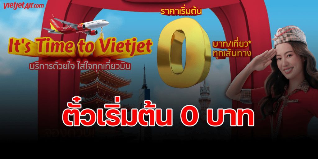 เวียตเจ็ทไทยแลนด์ลดกระหน่ำ ออกโปรโมชั่น “บริการด้วยใจ ใส่ใจทุกเที่ยวบิน (It’s Time to Vietjet)” เสนอบัตรโดยสารราคาพิเศษ เริ่มต้นเพียง 0 บาท (ราคาไม่รวมภาษีและค่าธรรมเนียม) สำหรับเดินทางบนเครือข่ายเส้นทางบินภายในประเทศและระหว่างประเทศของเวียตเจ็ทไทยแลนด์ สามารถสำรองบัตรโดยสารได้ระหว่างวันที่ 19 – 22 สิงหาคม 2567 ใช้เดินทางได้ระหว่างวันที่ 1 กันยายน 2567 – 31 มีนาคม 2568 (ยกเว้นวันหยุดนักขัตฤกษ์) ที่ th.vietjetair.com