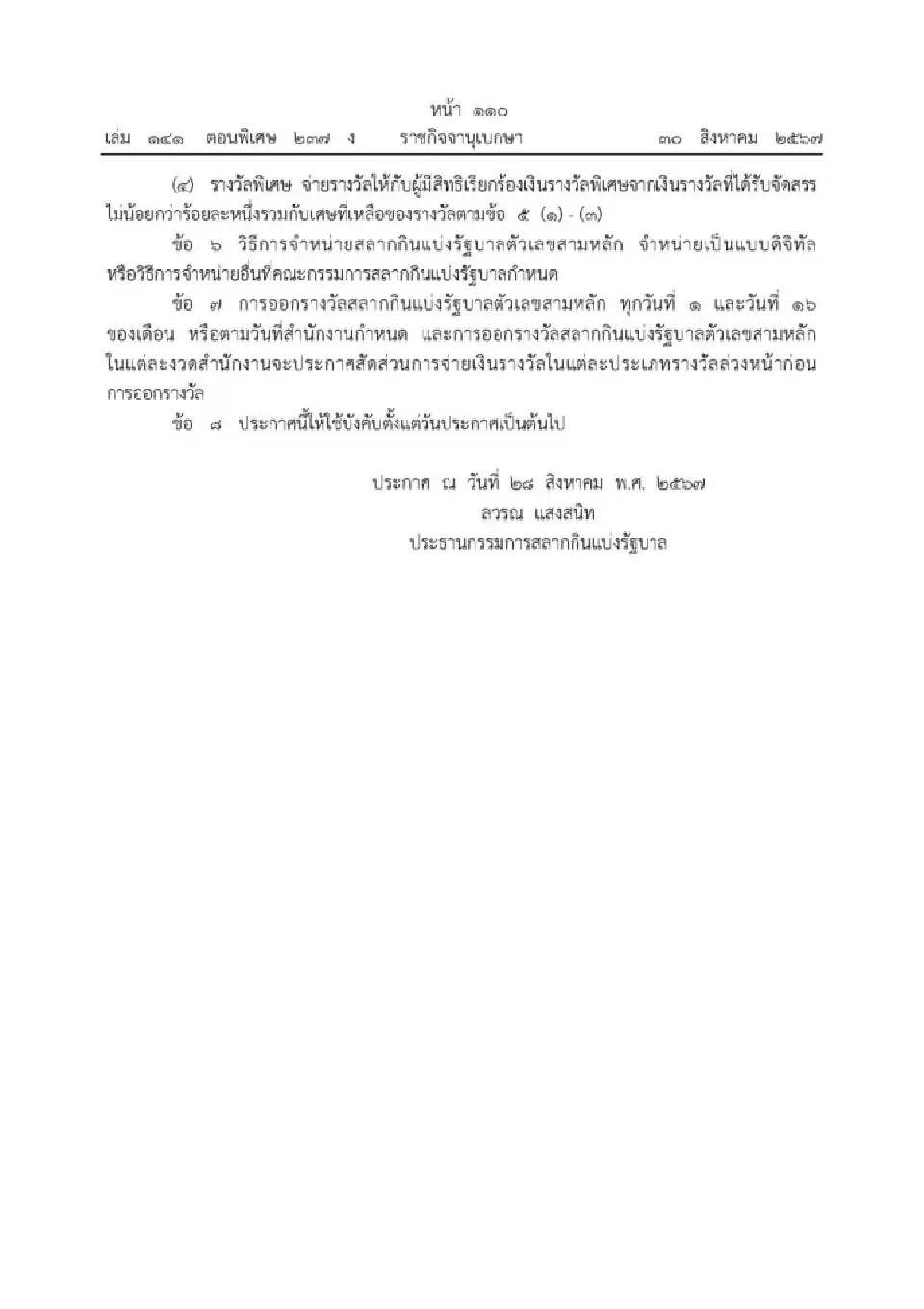 ข้อ 7 การออกรางวัลสลากกินแบ่งรัฐบาลตัวเลขสามหลัก ทุกวันที่ 1 และวันที่ 16